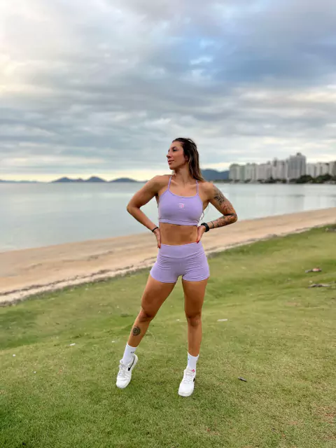 Conjunto confortável e com caimento incrível , confeccionado em tecido poliamida com elastano, top e shorts em tecido duplo . Top com alças finas e cruzadas ( tem abertura para bojo) e shorts com recorte que valoriza ( shorts no comprimento atlete aquele mais curtinho ) .